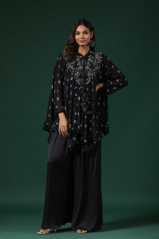 SummerFalling-Black Embellished Tie Dye Premium Chinon Silk Co-Ord Set
