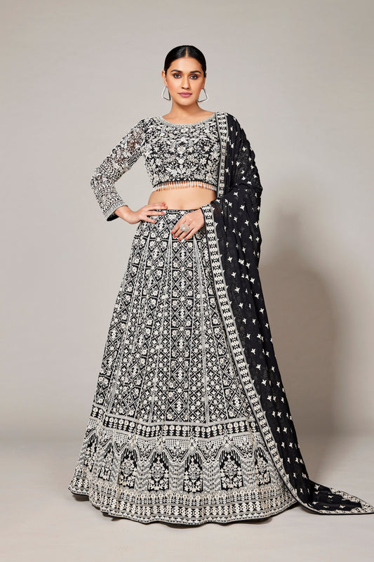 SummerFalling-Black Embroidered Premium Georgette Silk Lehenga Set
