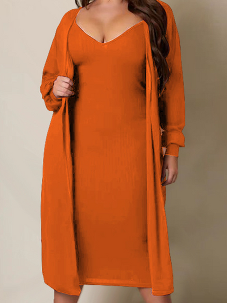 SummerFalling-Women's V-neck Long sleeved Solid Color Casual Set